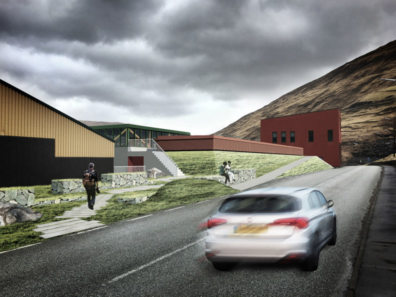 Nýggja koplingarstøðin, sum hon fer at taka seg út móti vegnum. SNA arkitektar hava teknað.