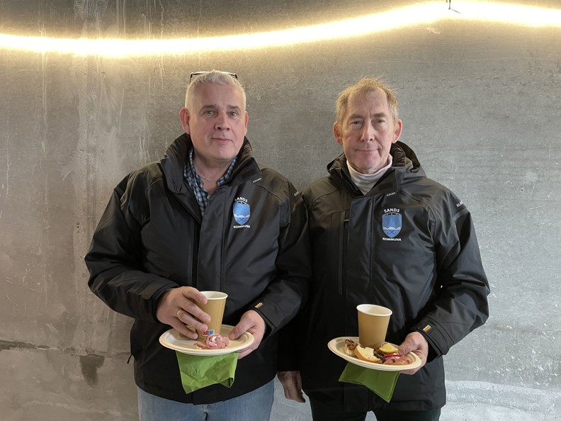 Arbeiðsfólk, veitarar, umboð fyri Sands kommunu og Sev vóru møtt í nýliga innilokaðu koblingarstøðini á Sandi.