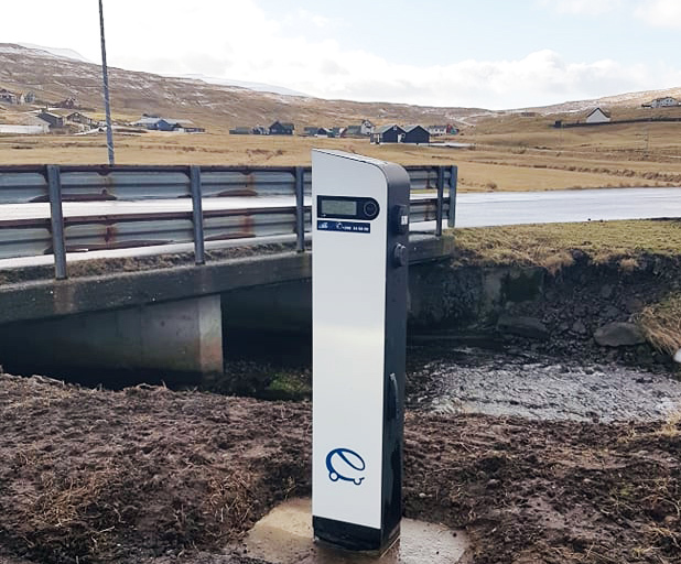 Frammanundan var ein DC løðistøði á Sandi, og nú er so ein AC løðistøð sett upp á Møl í Skálavík. Løðistøðin kann løða við max 22 kW pr. stikk, og møguleiki er hjá tveimum bilum at løða í senn.