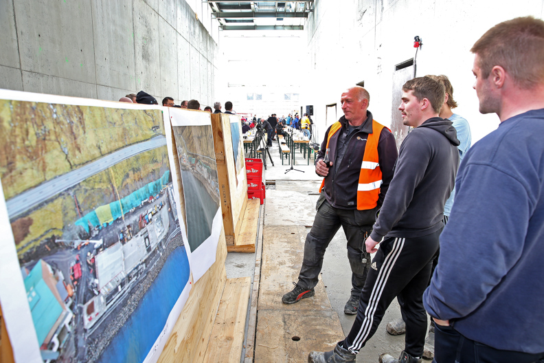 Nógva og umfatandi stoypiarbeiðið krevur, at arbeitt verður við stórum forskallingarflakum, og stundum hevur vindur ávirkað hetta arbeiðið. Samskipanin av byggiarbeiði og uppseting av stórari og tungari mekaniskari útgerð er sera krevjandi. Men samanumtikið hevur arbeiðið gingið væl við nærlagni frá arbeiðsfólki og leiðslu á staðnum.